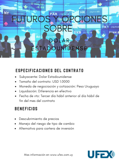 | Forma de liquidación: Cash settlement (Liquidación de diferencias en efectivo) contra el tipo de cambio publicado por el BCU para el dólar Fondo del día de vencimiento del contrato |